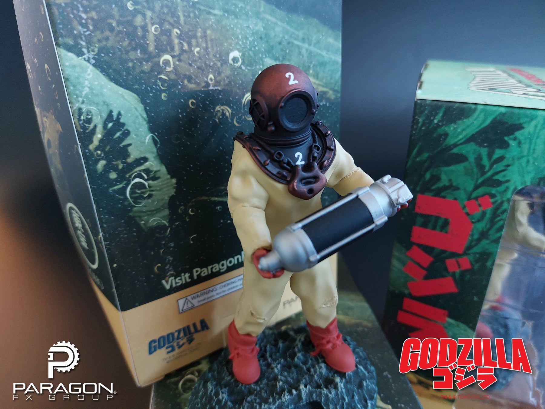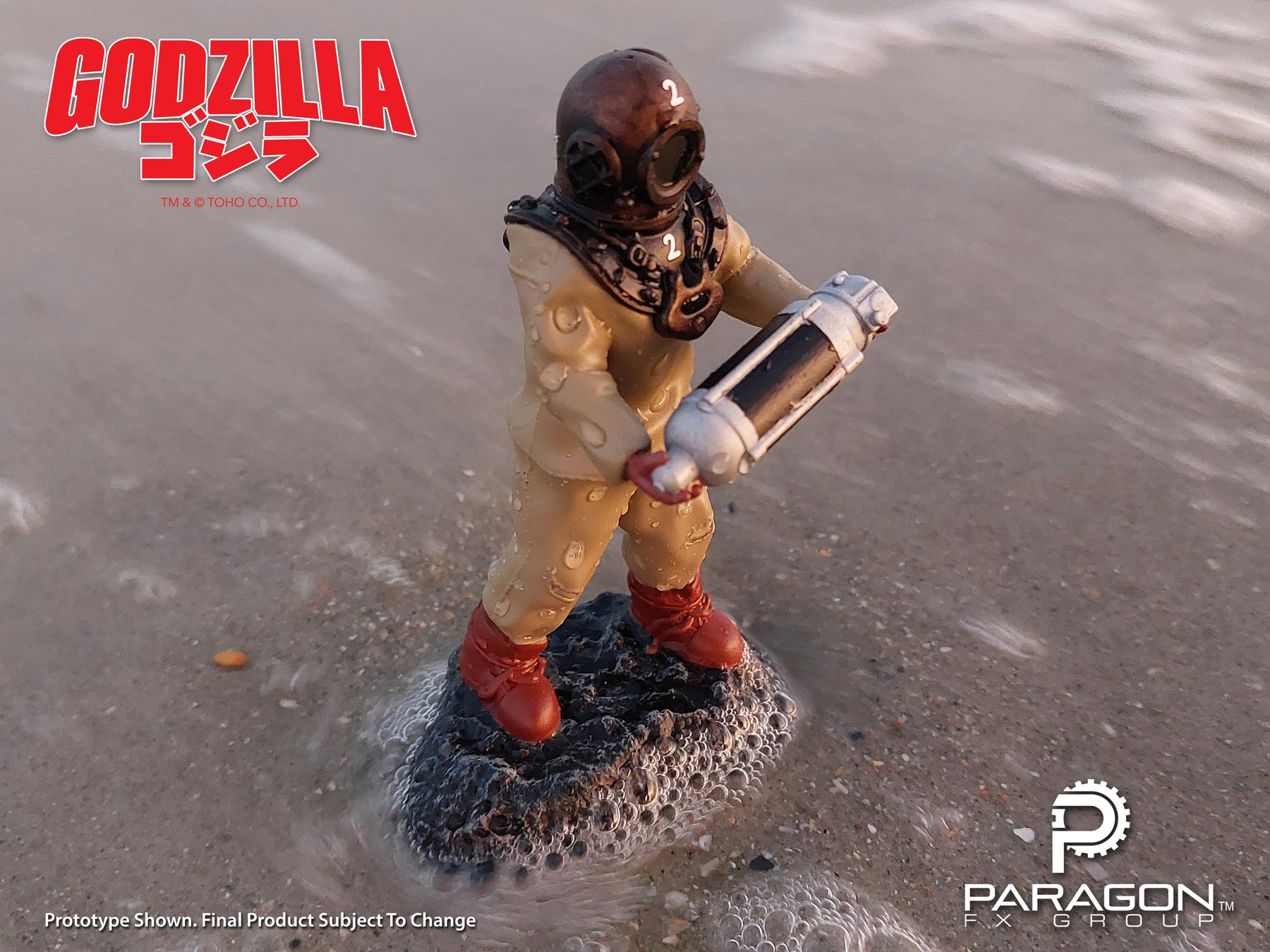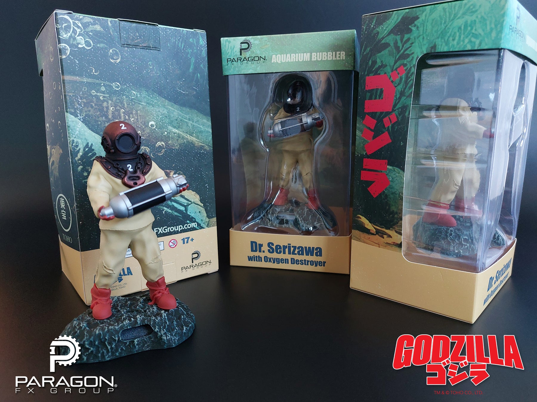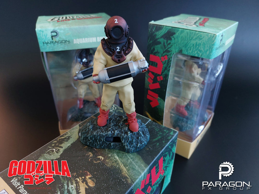 The enigmatic Dr. Serizawa stands ready with his life's work, The Oxygen Destroyer, to protect your fish tank from all manner of kaiju. Air bubbles rise from the base simulating the "micro-oxygen" that ultimately defeats Godzilla. This limited-edition aerating ornament ships complete with aeration stone in base.