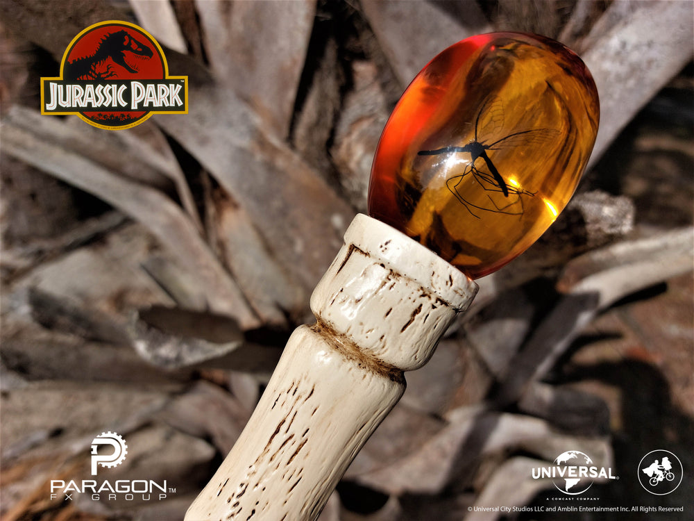 Paragon FX Group has proudly partnered with Universal Studios and Amblin Entertainment to bring you this limited edition, museum quality replica. Crafted in resin and meticulously finished, each cane is adorned with faux insect and amber. (Toxorhynchites rutilus)