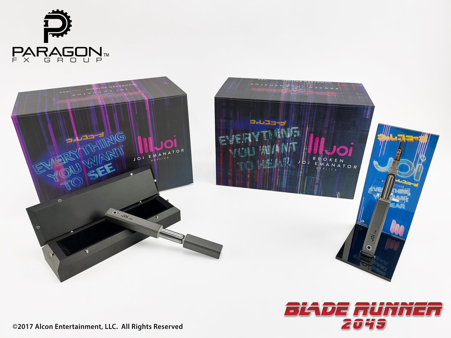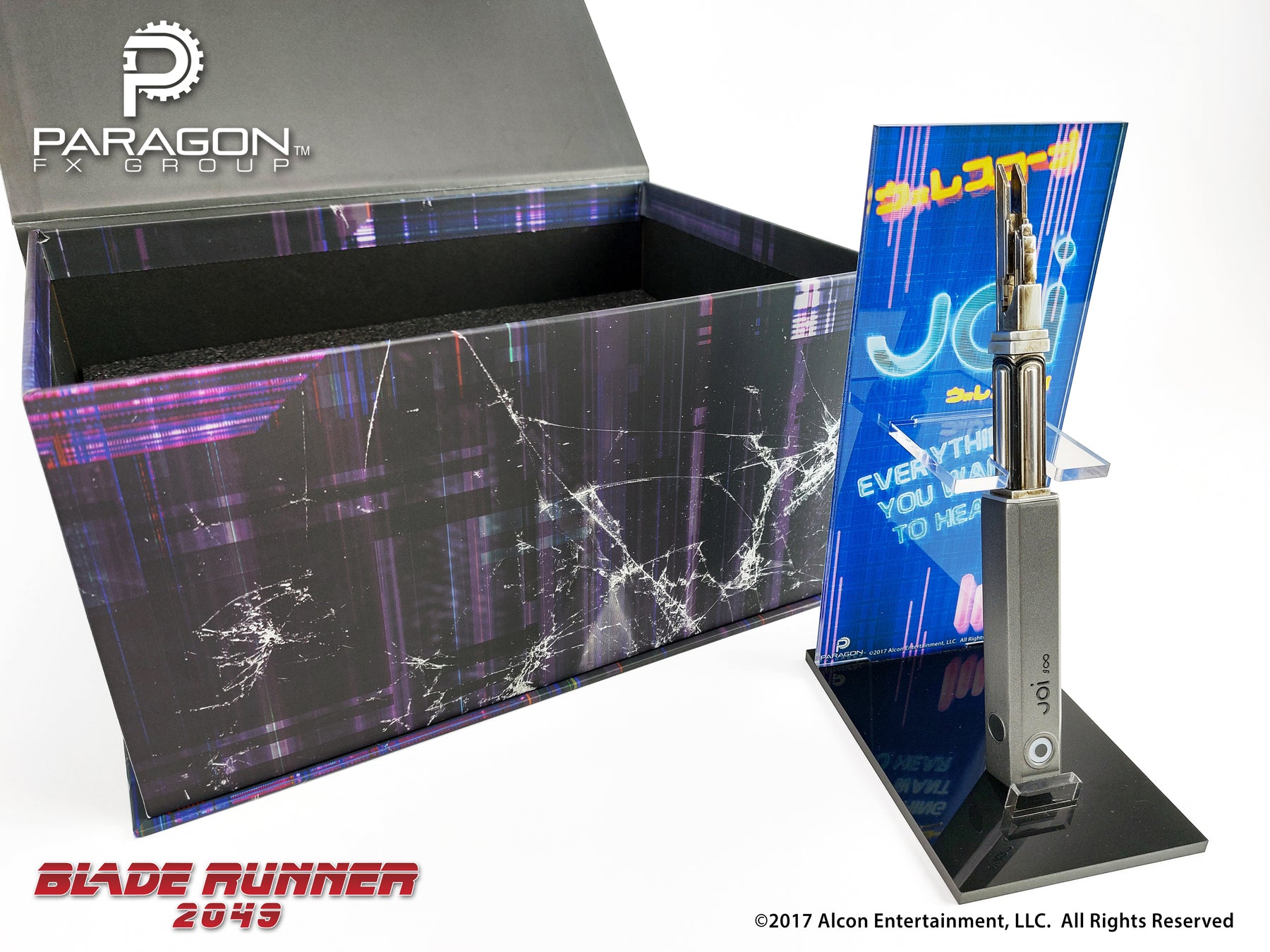 Team Paragon worked directly with the studio contracted to make this piece for the film, ensuring every detail was correct. This static, licensed replica is limited to just 300 pieces and is manufactured entirely of metal. The acrylic stand, themed from Joi's billboard is also included.